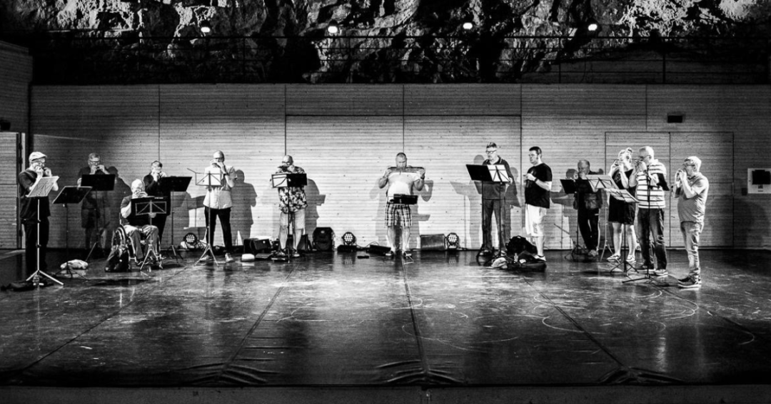 Huuliharppuorkesteri Lipstikka esiintymässä Kaustisten kansanmusiikkijuhlilla.