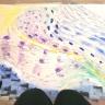 "Olin jo jonkin aikaan pohtinut ryijykurssia koska ryijyt olivat kiehtovia ja niissä oli tapahtunut mielenkiintoista uudistumista. Kurssilla sai loistavat perustiedot ja hyvän opetuksen, joten sitten vaan suunnittelemaan. Ryijyn hienous on siinä, että langoilla voi luoda mitä tahansa ja vaikeus olikin valita värit, muodot ja langat, joten päädyin vapaaseen tekemiseen ilman mallikuvaa. Värit valitsin inspiraation myötä ja halusin värikkään ryijyn tehdä. Ja niinhän siitä sitten tulikin varsin värikäs!"(Maria)