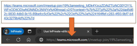 Kopioi nyt saamasi Team-linkki ja liitä se selaimen osoiteriville.