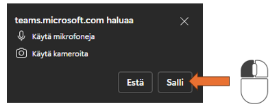 Anna Teamsin käyttää mikrofoniasi ja kameraasi painamalla ’Salli’.